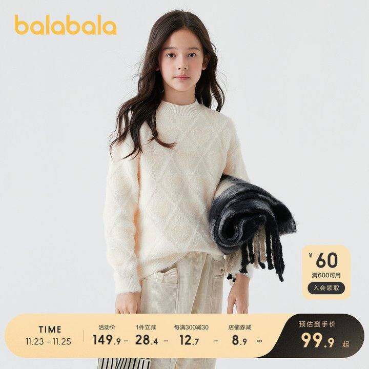 巴拉巴拉儿童毛衣女童秋装针织衫中大童套头上衣甜美爱心提花洋气