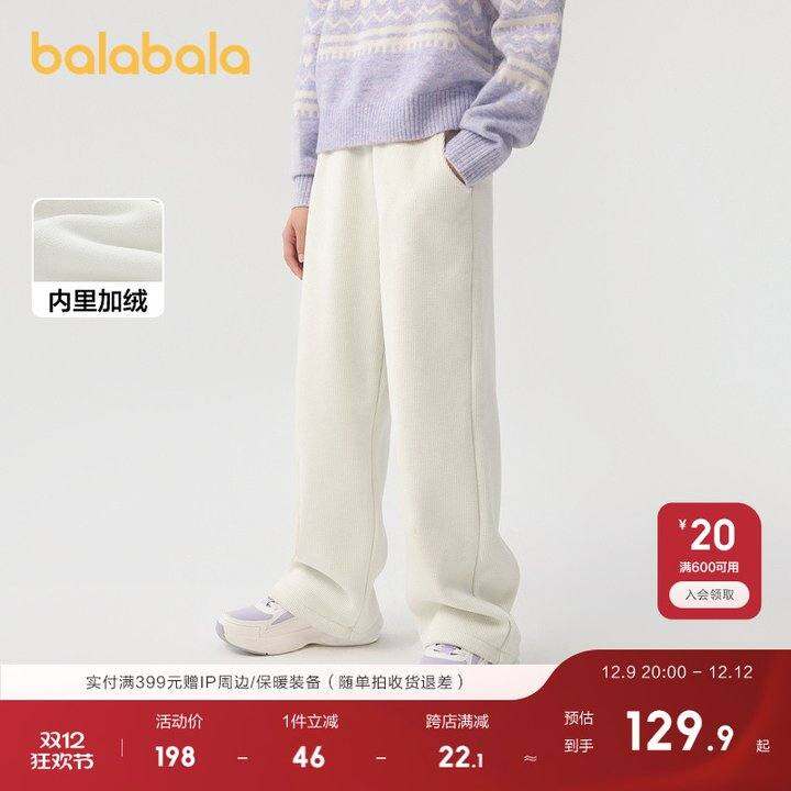 巴拉巴拉童装女童加绒裤子冬装大童长裤2024款儿童小童宽松直筒裤