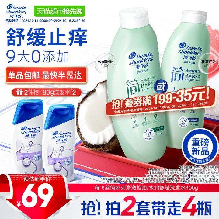 海飞丝简洗发水舒缓止痒温和去屑净澈控油洗发露护头皮洗头膏400g