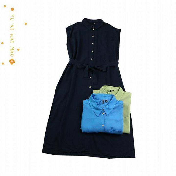 春夏新款欧美女士翻领无袖麻混纺连衣裙 中长款双排扣开叉衬裙 K1