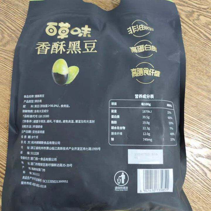 这个配料表只有黑豆和盐,不知道为什么网上卖的也不多,可能是太健康了吧,口感是酥酥的,但是一点也不油。多吃点黑色的还是不错的。