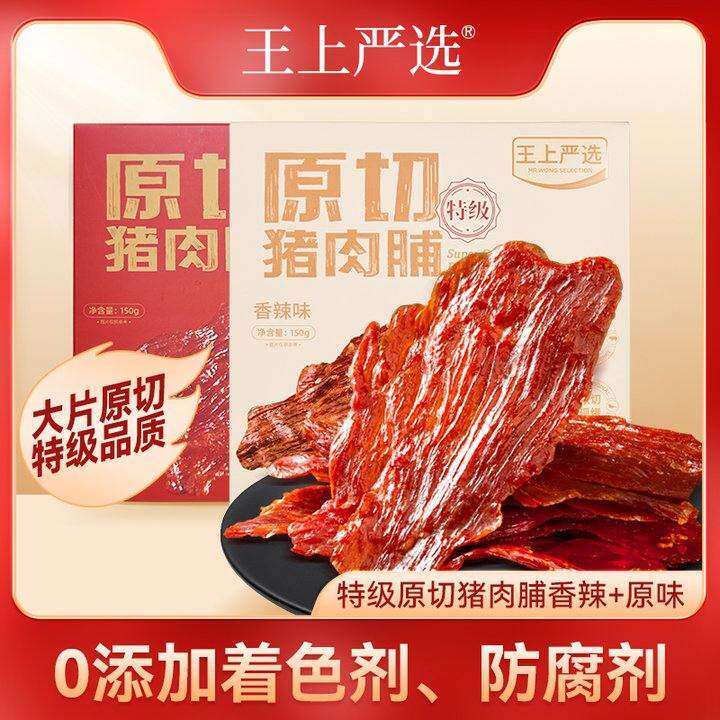 150g*2盒混合口味王上严选原切特级猪肉脯干大片高蛋白靖江特产