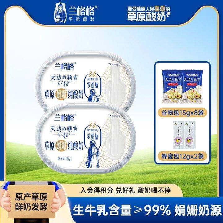 兰格格草原酸奶天边的额吉无蔗糖180g*2+谷物包*2+蜂蜜*2