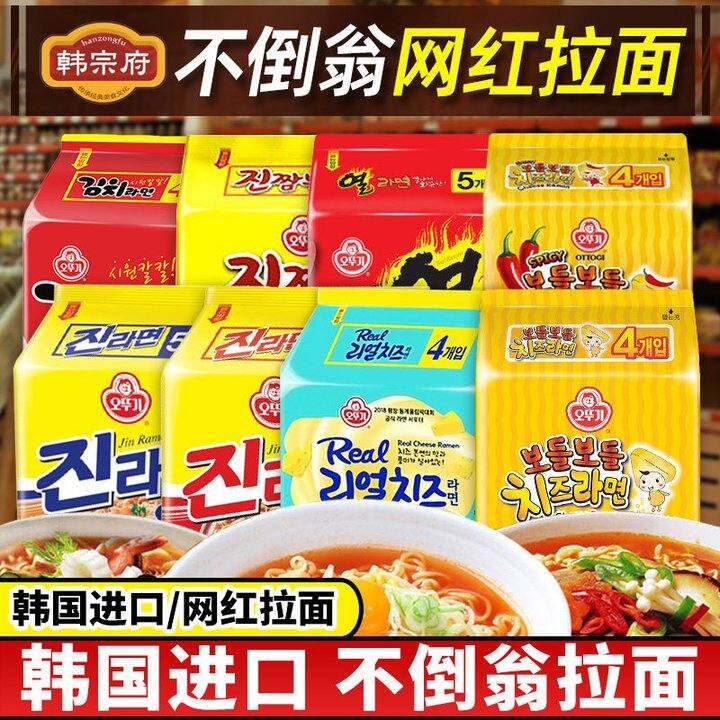 韩国不倒翁金拉面原味辣味芝士方便面特浓真海鲜泡菜速食进口泡面