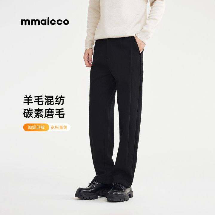 墨麦客男裤2025冬季新款羊毛混纺宽松直筒裤男士中腰磨毛休闲长裤