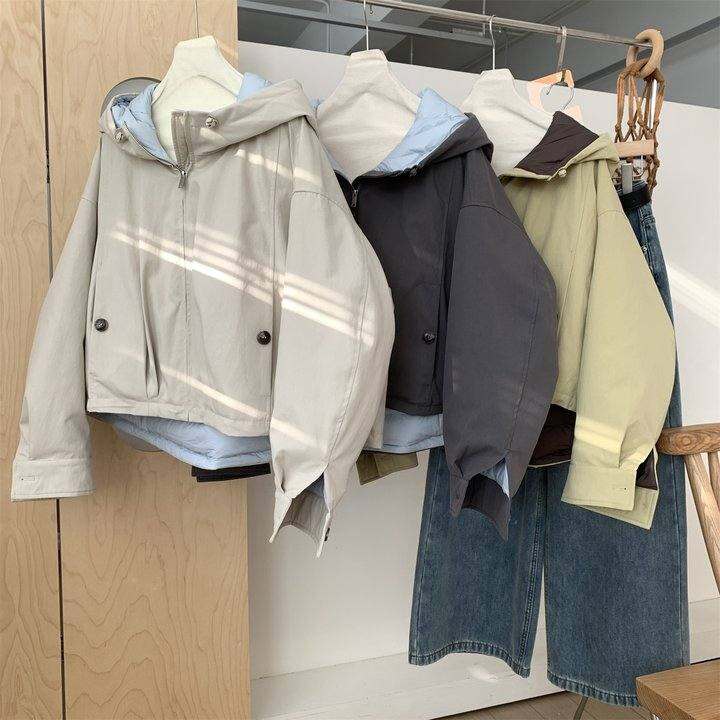 R1696 工装风连帽短款夹克加厚保暖外套羽绒服品质极好0.6kg
