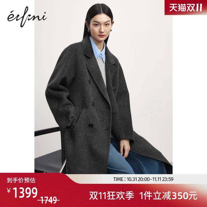 【镇店爆款】伊芙丽高智驼绒真丝气质双面羊毛大衣女2024秋季外套