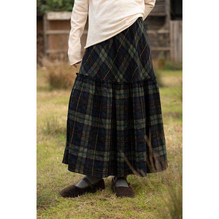 WovenYonder25AW 羊毛松紧腰格子棕色半身裙子女冬不规则a字裙
