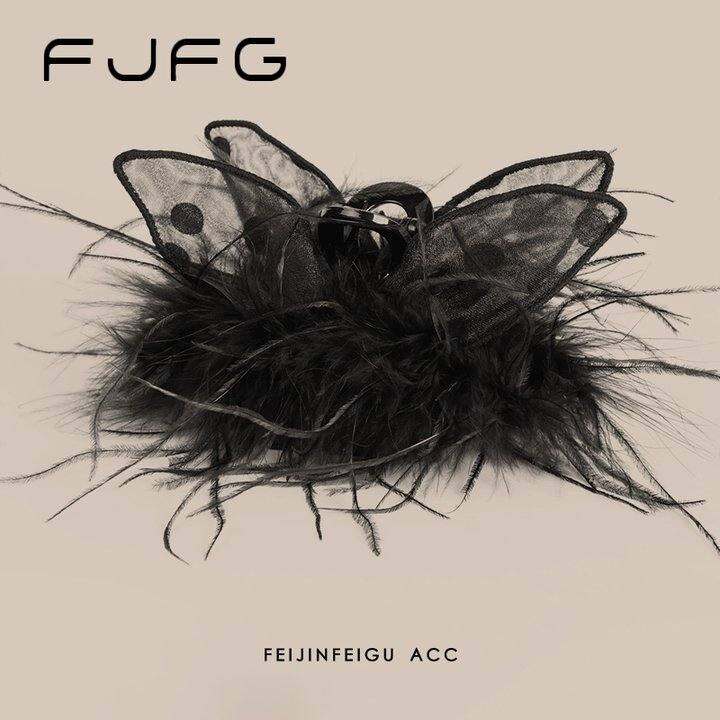 【精灵猫抓夹】显发量秋冬新款纯欲风羽毛鲨鱼夹半扎发盘发发夹新