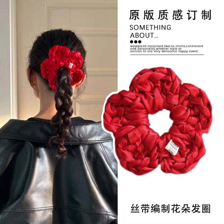 韩国博主同款亮色手工丝带编织大花朵丸子头马尾发圈后脑勺头绳女