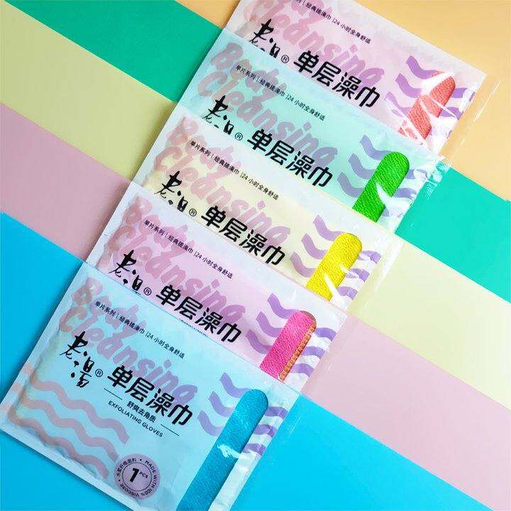 【5只】老汤单层澡巾 独立包装薄款洗澡搓背手套通用中砂去灰搓澡