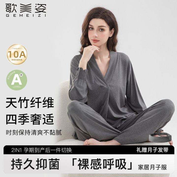 歌美姿竹纤维家居月子服孕妇天竹睡衣产后哺乳春夏套装产前女薄款