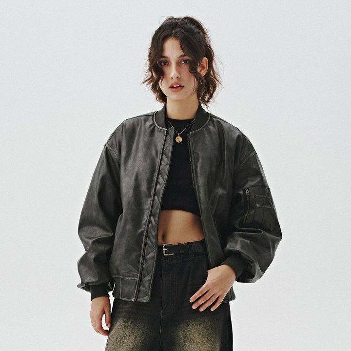 【折扣品】714street美式复古飞行员夹克擦色皮衣外套短阔棉服男