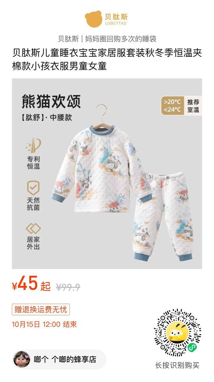 【蜂享家】#小程序://蜂享店/品牌特卖限时折扣/7tiNreEcfx5DKPd 贝肽斯儿童睡衣宝宝家居服套装秋冬季恒温夹棉款小孩衣服男童女童