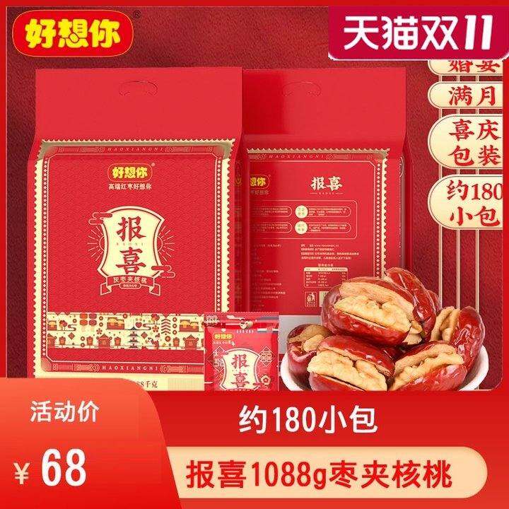 好想你报喜1088g枣夹核桃零食婚庆喜糖散装结婚专用小包红枣喜枣