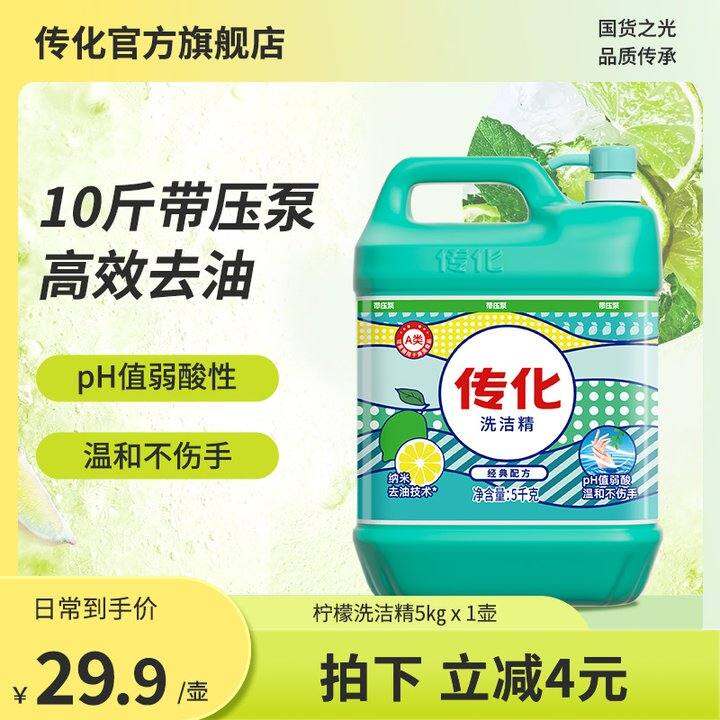 传化洗洁精大桶家用5kg瓶装厨房商用餐饮去油专用10斤装整箱批