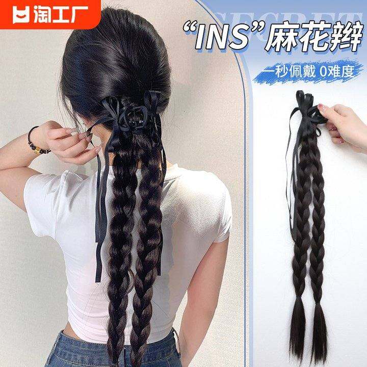 假发辫子抓夹式网红ins自然高低双马尾蝴蝶结丝带麻花辫减龄长辫