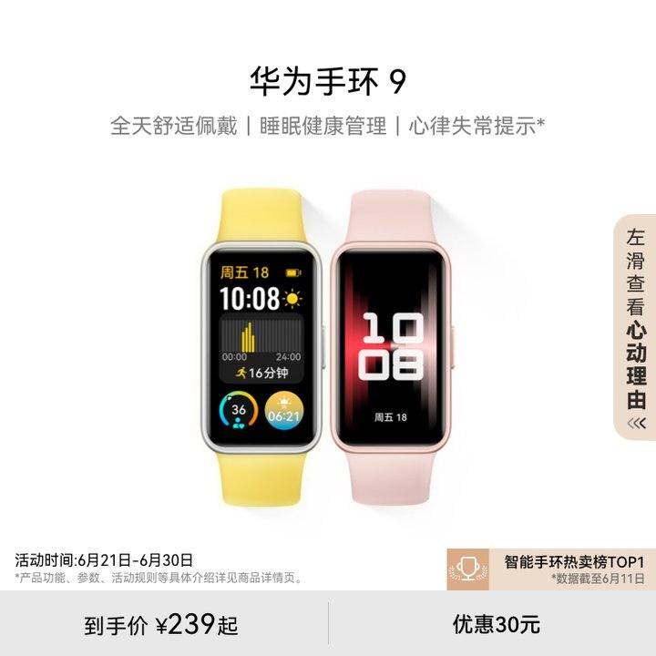 【新品】华为手环9智能手环轻薄舒适睡眠监测睡眠健康快充长续航测心率运动手环华为手表支持NFC手环8升级