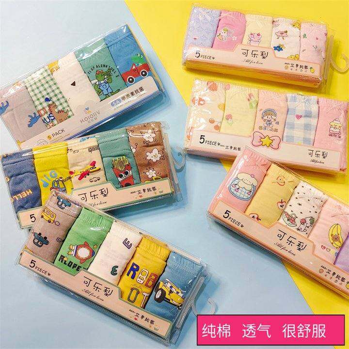 5条装 可乐梨儿童内裤纯棉女童平角裤男童四角裤中大童小童短裤