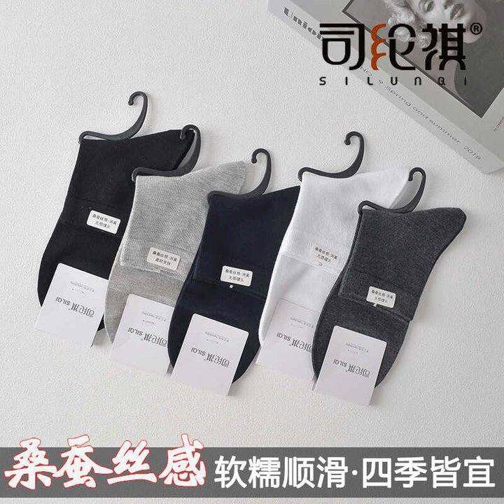 司纶祺8117桑蚕丝感男袜柔软真丝质感不臭脚中筒纯色百搭商务袜