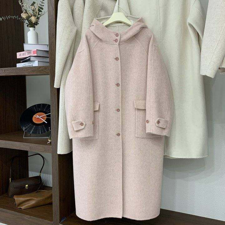 连帽双面羊绒大衣女中长款2024秋冬新款韩版单排扣宽松羊毛外套