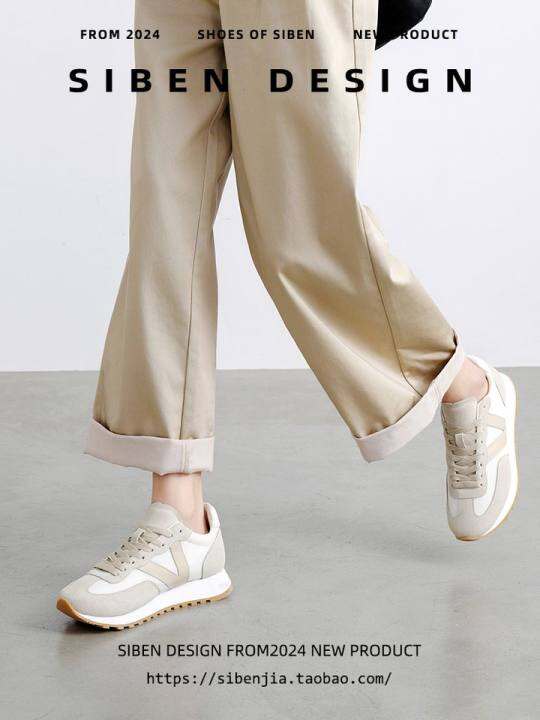 私奔家网布拼接透气阿甘鞋女2024春季新款牛反毛皮拼色休闲德训鞋