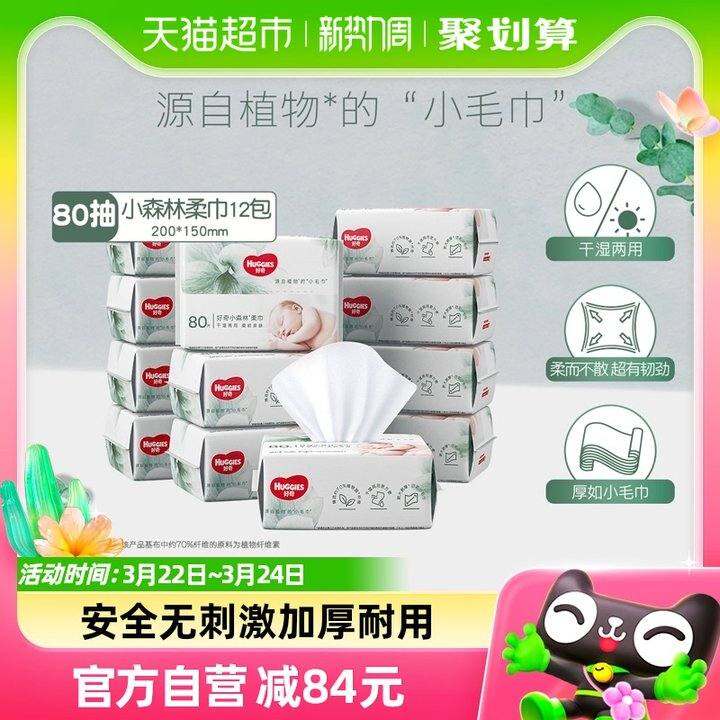 好奇超高端天然小森林棉柔巾干湿两用加厚婴儿棉柔巾80抽*12包