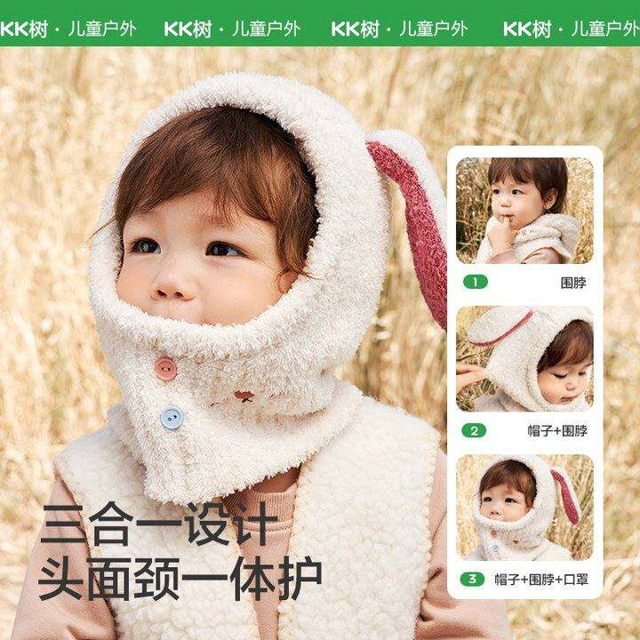 KK树宝宝帽子秋冬季儿童围脖一体冬天男童女孩婴儿套头帽毛线护耳