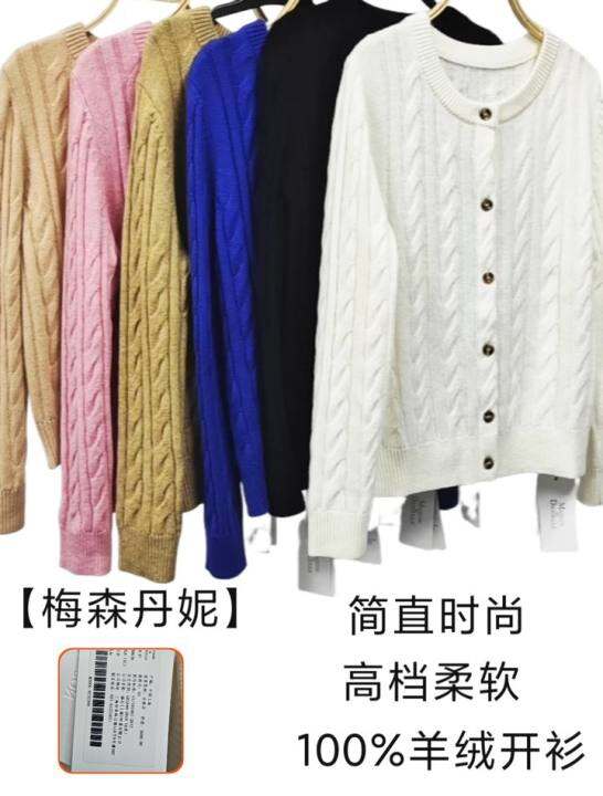 【梅森丹妮】高级简直时尚柔软100%羊绒针织开衫外套