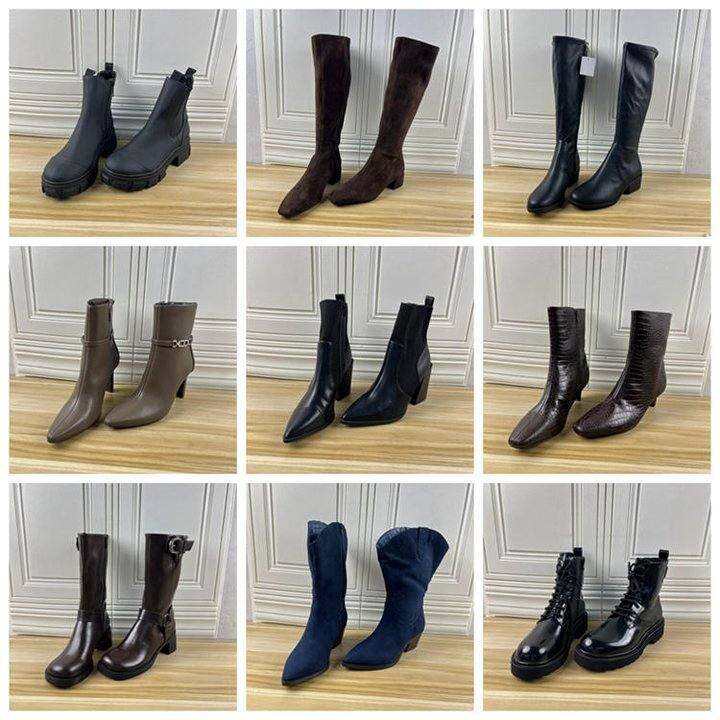 外贸原单女靴杂款38.5-39码独码清仓时尚圆头纯色粗跟侧拉链短靴