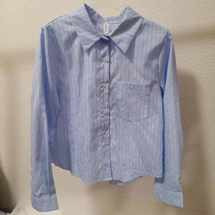 2025秋季新款时尚条纹百搭显瘦长袖衬衫女休闲竖条单口袋