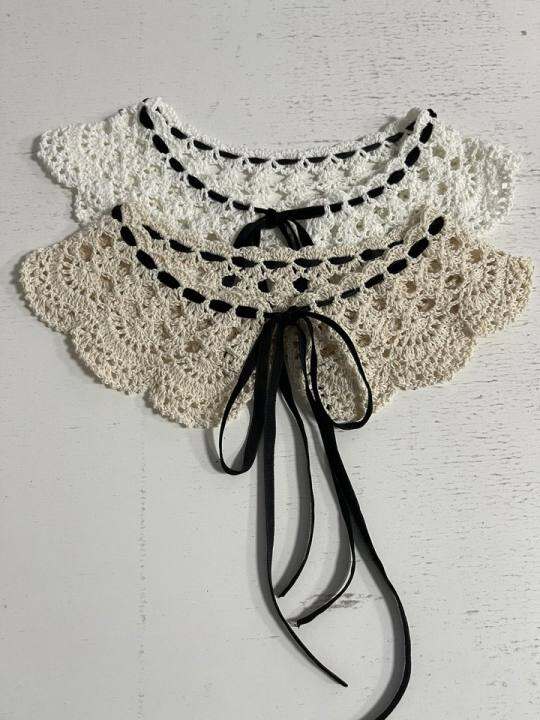 森女百搭手工钩花编织单层花边 波浪花纹 丝绒带领子