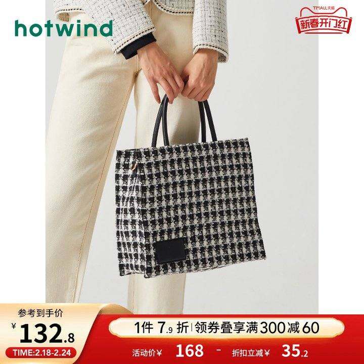 热风2023年秋季新款女士小香风格纹花呢手提包大容量名媛女款包包