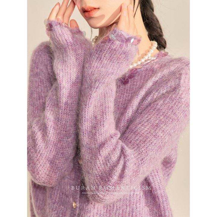 BURAN 早秋chic上衣紫色设计感小众法式打底毛衣温柔气质针织开衫