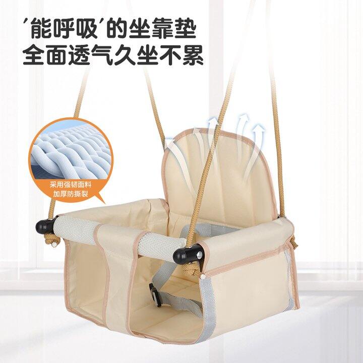 给宝宝买了这个小秋千(“米白秋千【加棉座椅+加高靠背】送安全带”选项,活动下来36块),当时觉得挂在院子里或者大树上正合适,到手看看蛮结实的,哈哈昨天给她挂起来用了,真合适,宝宝特喜欢,今早她又在院子里荡秋千了,春天早上太阳下特合适!!!