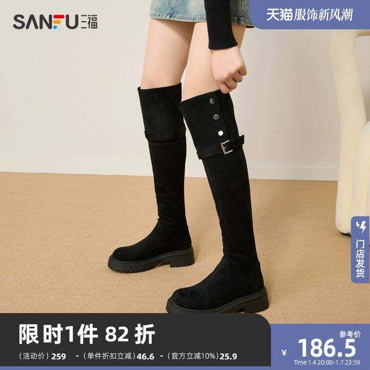三福长靴女2023冬韩系翻折两穿显瘦厚底过膝长筒靴女鞋827610