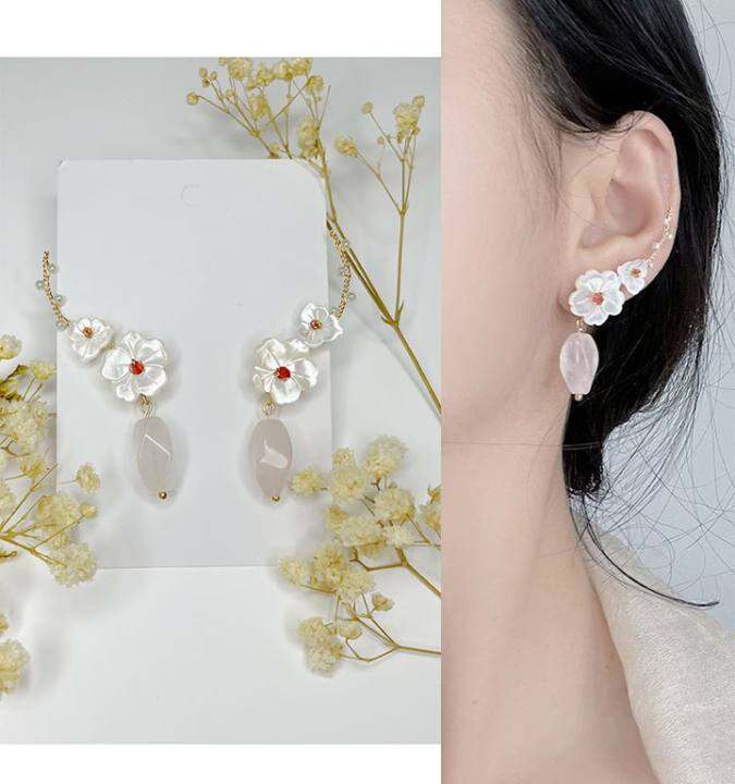 YIBRLI半弧形耳饰 温婉气质 白蝶贝耳钉 925银针