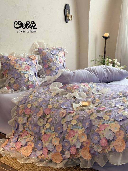 伴亩花棠︱法式浪漫立体花朵冬季牛奶绒四件套重工加厚保暖床品仙