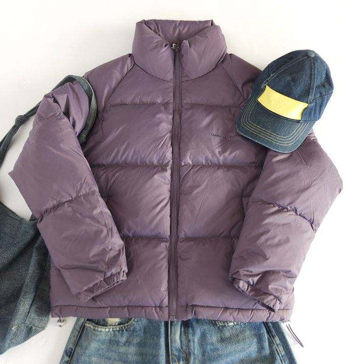 韩系穿搭紫色极简羽绒服外套