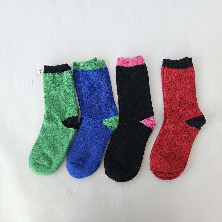 秋冬多巴胺色系珊瑚绒撞色彩色系中筒袜保暖百搭