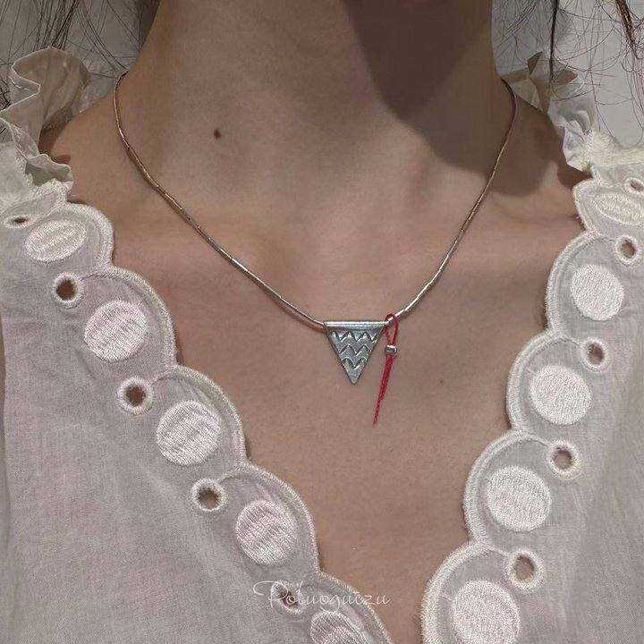 许愿树原创通体s925泰国进口手工银吊坠红绳好运梦想锁骨链重工
