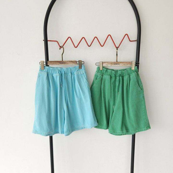 夏季多巴胺色松紧腰牛仔短裤