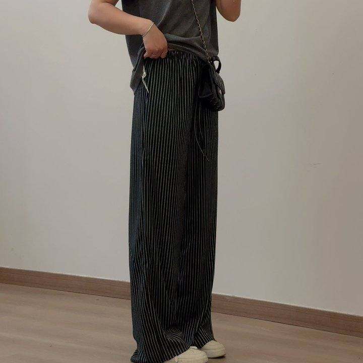 大脑门 经典宽条纹阔腿裤新款高腰百搭四季可穿显瘦拖地裤N322