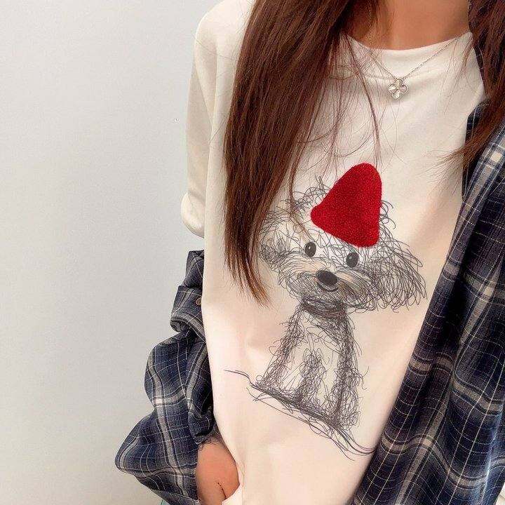 大脑门 素描小狗卡通印花短袖女T恤夏季宽松百搭圆领减龄上衣N371