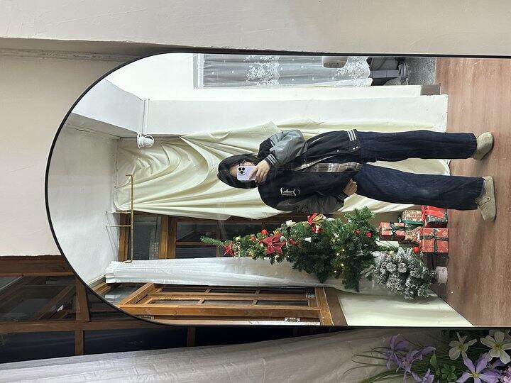 然后我穿的是s。一共三个颜色,绿色肉眼是最好看的,拍不出来,但是上身有点奇怪
