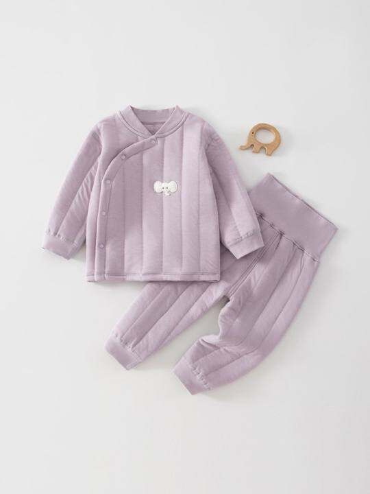 秋冬婴儿秋衣秋裤套装纯棉a类高腰护肚宝宝三层夹棉保暖家居服冬