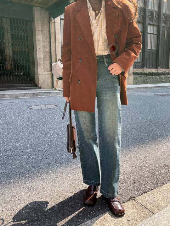你好卡农 复古洗水蓝色修身牛仔裤秋新款女高腰显瘦小个子直筒裤
