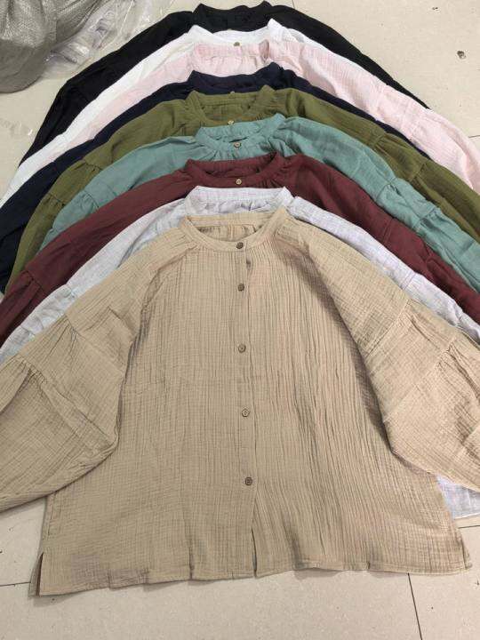 牌子高货墙推高品质 100亚麻纯色长袖衬衫春装新女1B/81301