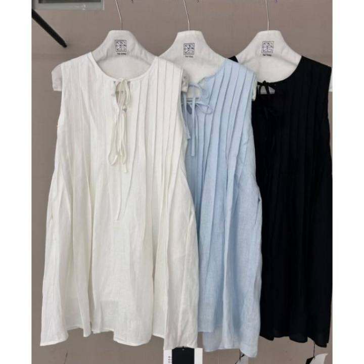【麦】气质条纹系带坎肩+无袖宽松显瘦连衣裙两件套25夏新款套装