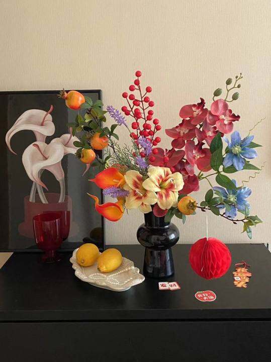 富贵红色仿真花套装新年婚礼喜庆气氛高质感仿真花套装花艺装饰